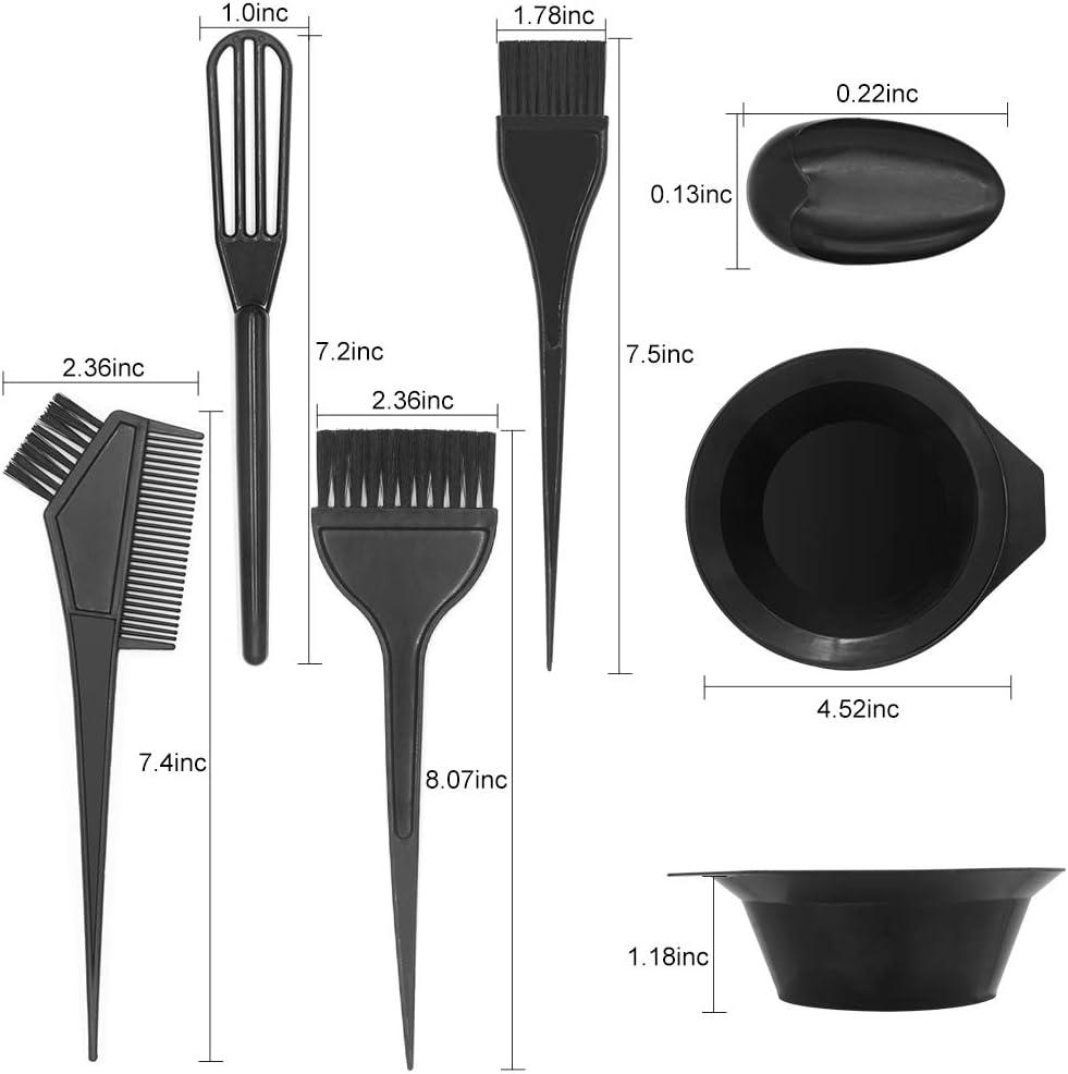 【62 PIECE HAIR DYEING KIT】Hair color brush and bowl set with 62 pieces, our hair coloring kit covers all your hair dyeing needs. Includes 2 Large Hair Color Mixing Bowls, 4 Hair Dyeing Brushes (2 small and 2 large), 2 hair dye combs, 2 agitators, 1 black cape, 2 clear capes, 4 hair caps, 6 hairdressing clips, 2 pairs of plastic ear caps, 2 pairs of vinyl gloves and 15 pairs of clear gloves.