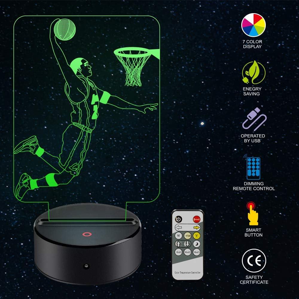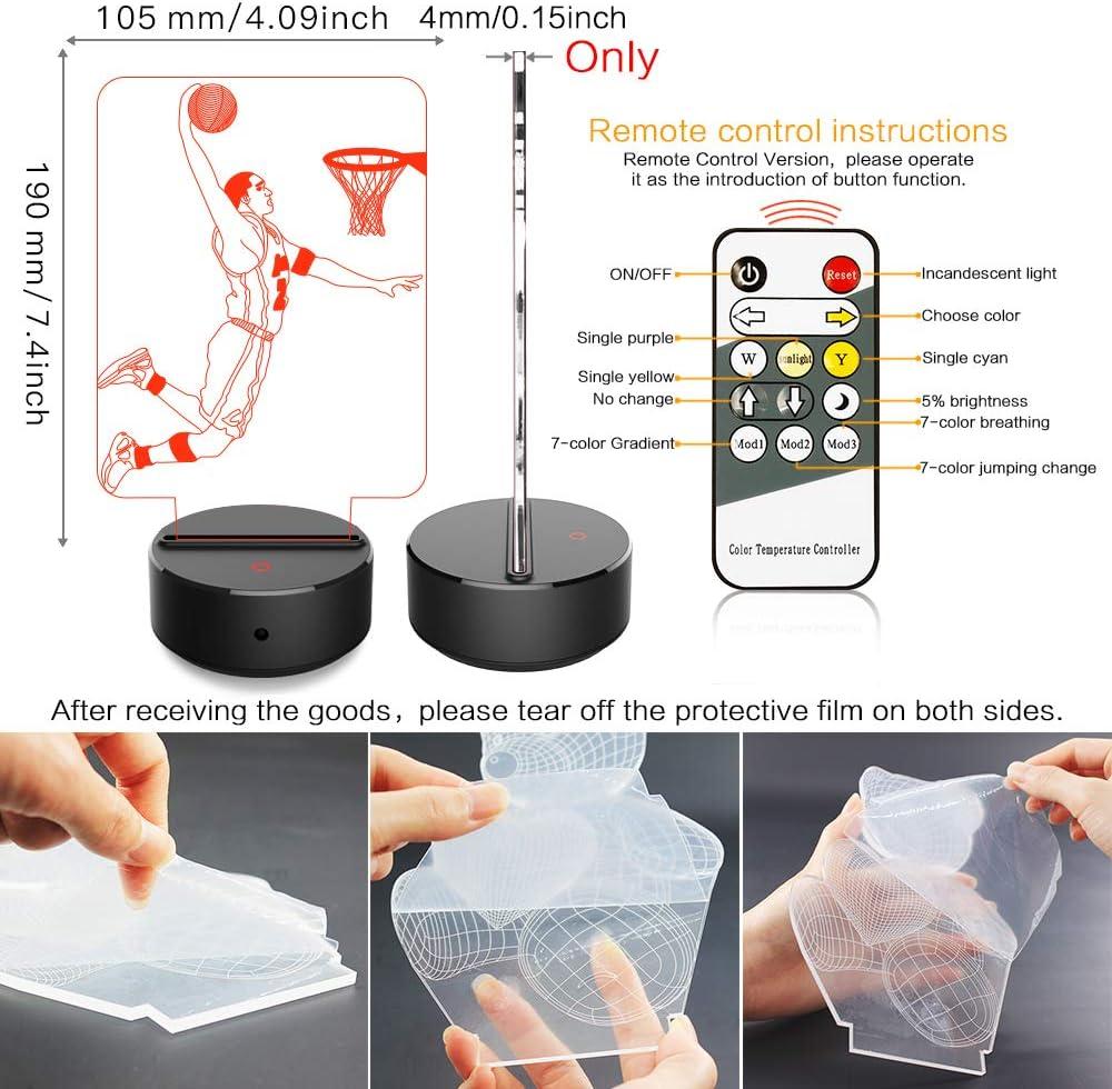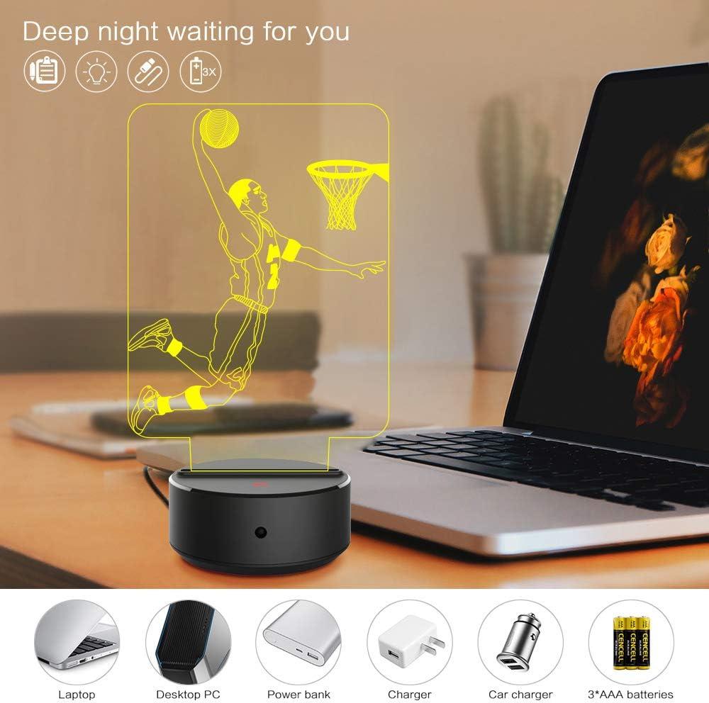 ☆【3D VISUAL EFFECT】— Creative 3D LED illusion night light has a nice 3d vision effect. 2 basketball cool design with 3D effect is much better in the dark. One design is a slam dunk, the other design is an dribbling, you can change it at any time.