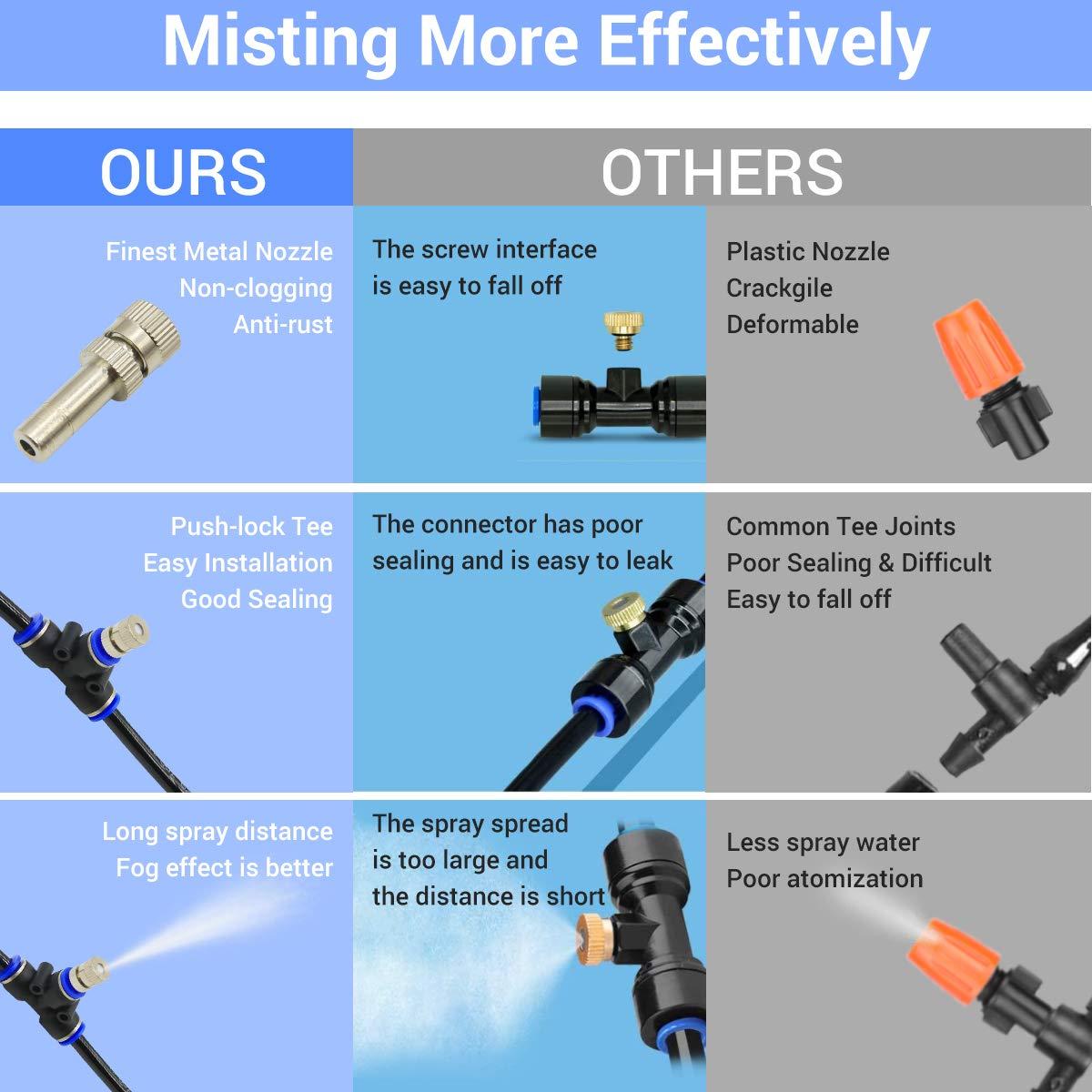 AmazeFan Misting Cooling System, Outdoor Water Mist Kit, 26.3’ (8M) Misting Line + 11 Mist Nozzles + Adapter (3/4") + 1 Teflon Tape + 1 Hose Washer Patio Garden Greenhouse Trampoline Water Mist