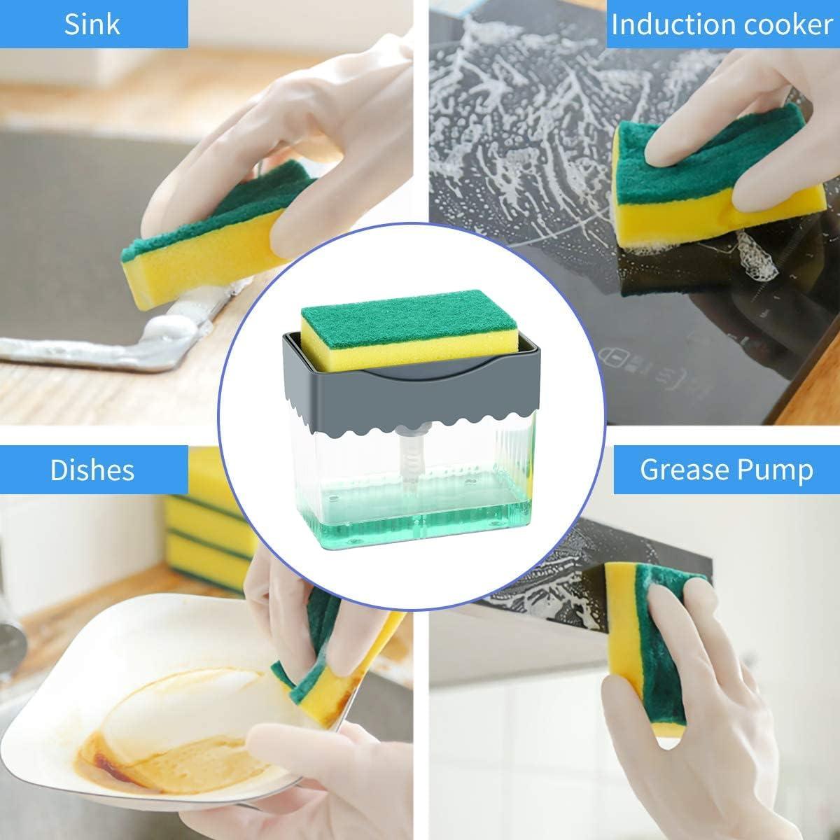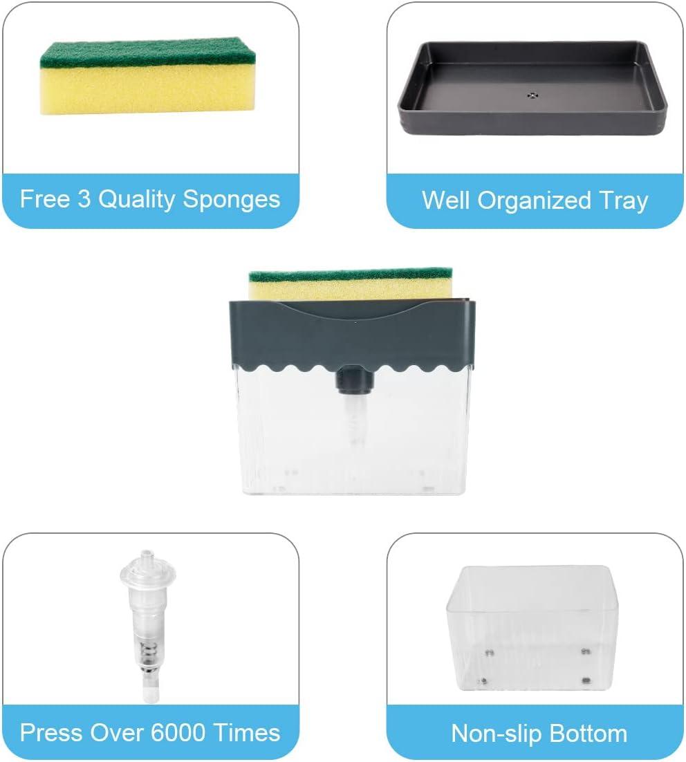 2 in 1 Innovative Design – Large capacity and high quality materials. Unlike traditional soap dispensers, Our soap sponge holder eliminates the need for frequent filling of soap, and excellent soap. Soap pump and sponge caddy help lasting use.