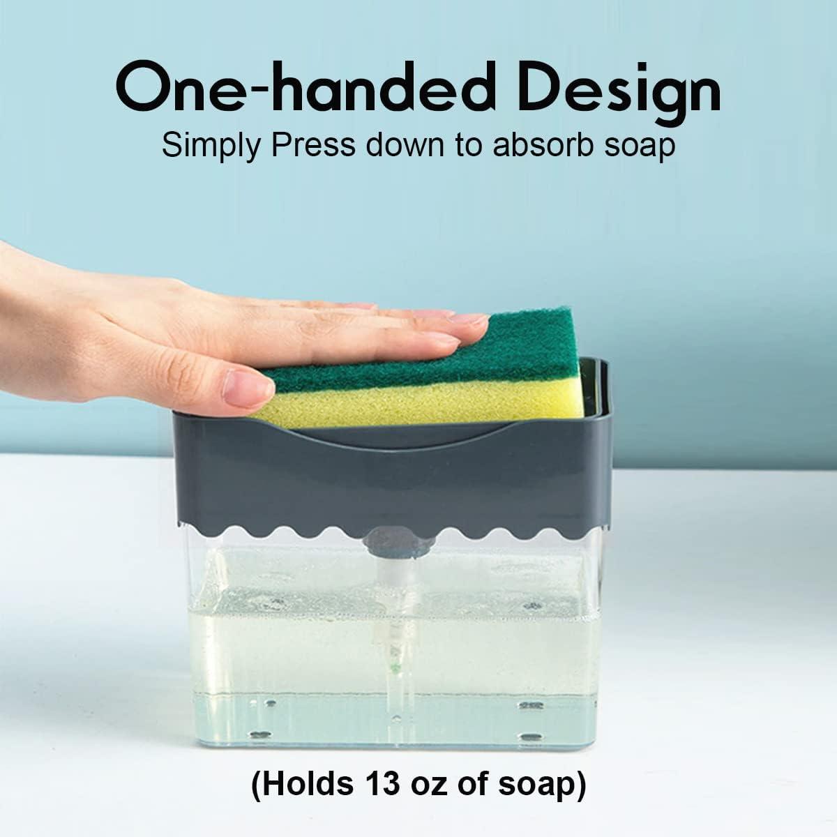 Easy to clean – One handed soap dispenser and sponge holder, press down to dispense the right amount of dish soap on the sponge.
