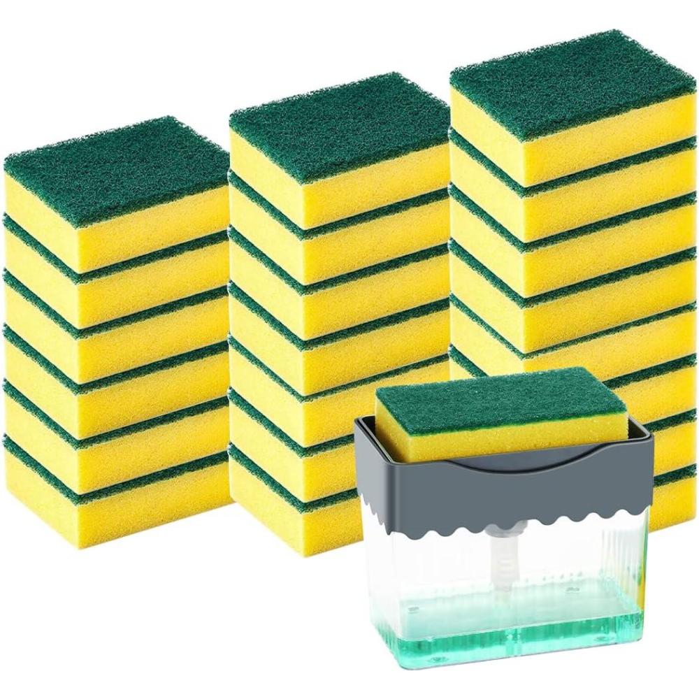 22 pack kitchen dish clean sponges with 1 soap pump dispenser