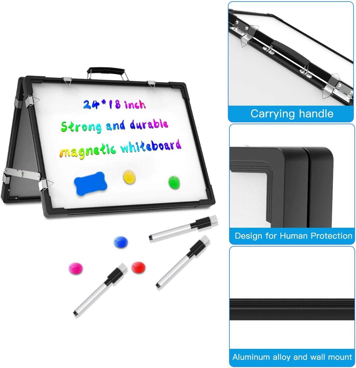 Whiteboard Dry Erase Boards, Portable White Board Double Sided Magnetic Board Stand,Foldable Hanging Wall Desktop Boards Easel for Kids Students Teacher for School Home Kitchen Office 24×18 Inch(Ivory Black)