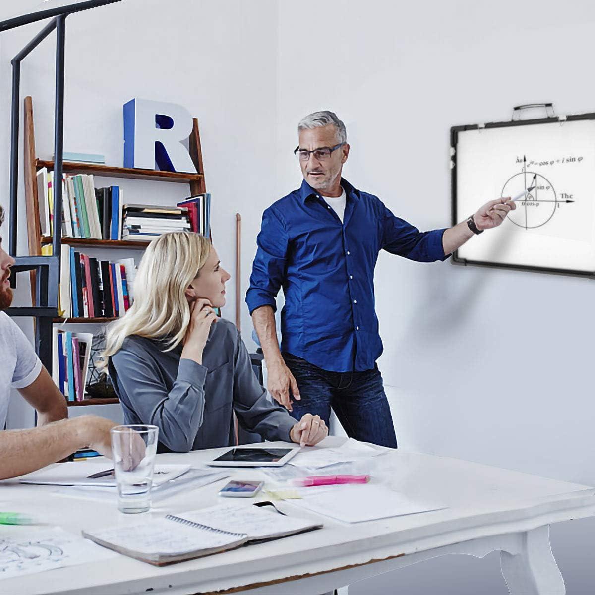 [CUTTING-EDGE DESIGN] – Our whiteboard measures 24″x18″ with a double-sided design. Our desktop size white board requires minimal space comfortably fit on your desk. The dry erase white boards provides an ample surface for capturing quick notes. The whiteboard also allow two people to use it due it's dual-design. The weight of the desktop whiteboard is 9.5lbs. The dry erase board has a handle at the top, making it portable. The dry erase boards can easily be stored or hung on wall.