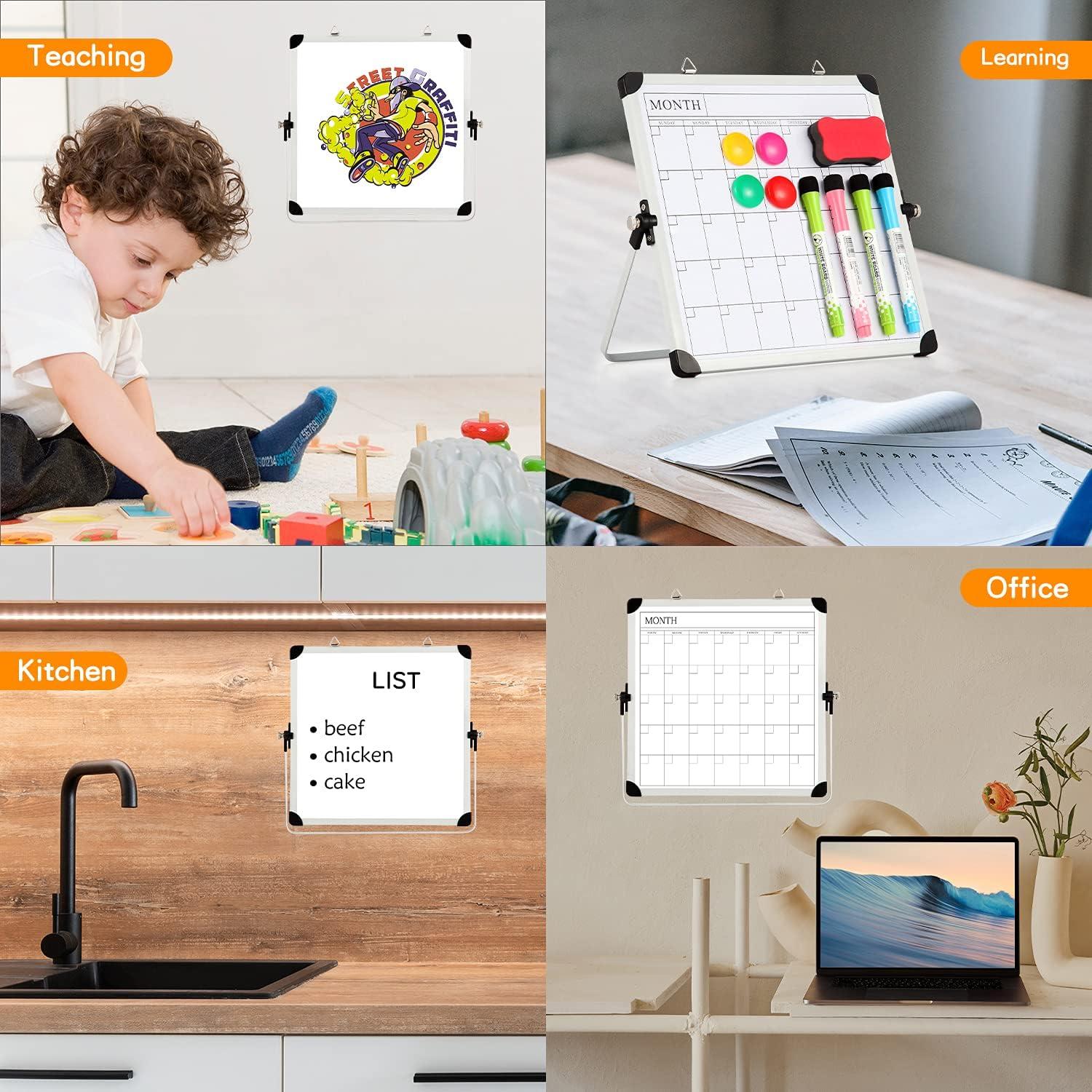 [PREMIUM QUALITY] – The dry erase boards has a sturdy aluminum frame with each corner covered with ABS plastic. These materials make the small dry erase board durable and reliable. The ABS wrapped-corners and premium aluminum protects the whiteboard and also is safe for kids. The tabletop whiteboard is very stable, and it does not shake while you write. Also, this dry erase boards is moisture-proof, rustproof, and anti-deformative, which creates a long-lasting, reliable product.